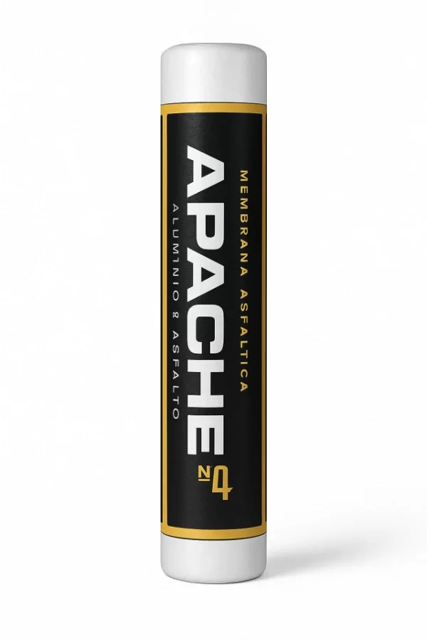 Membrana constituida por asfaltos plásticos normalizados, refuerzo central de polietileno y con cara superior de aluminio gofrado.