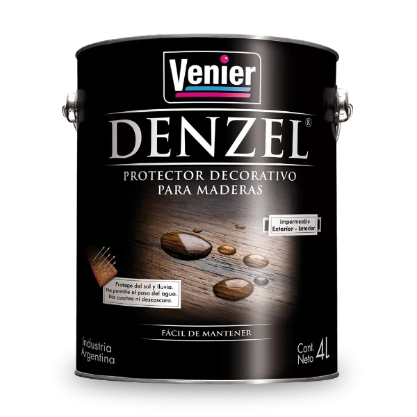 Denzel es un revestimiento de alta gama destinado a proteger, embellecer y realzar el color de las maderas. Elaborado con resinas de máxima calidad y alto porcentaje de sólidos. Gracias a sus colorantes protege la madera de los rayos UV otorgándole gran resistencia a la intemperie.
